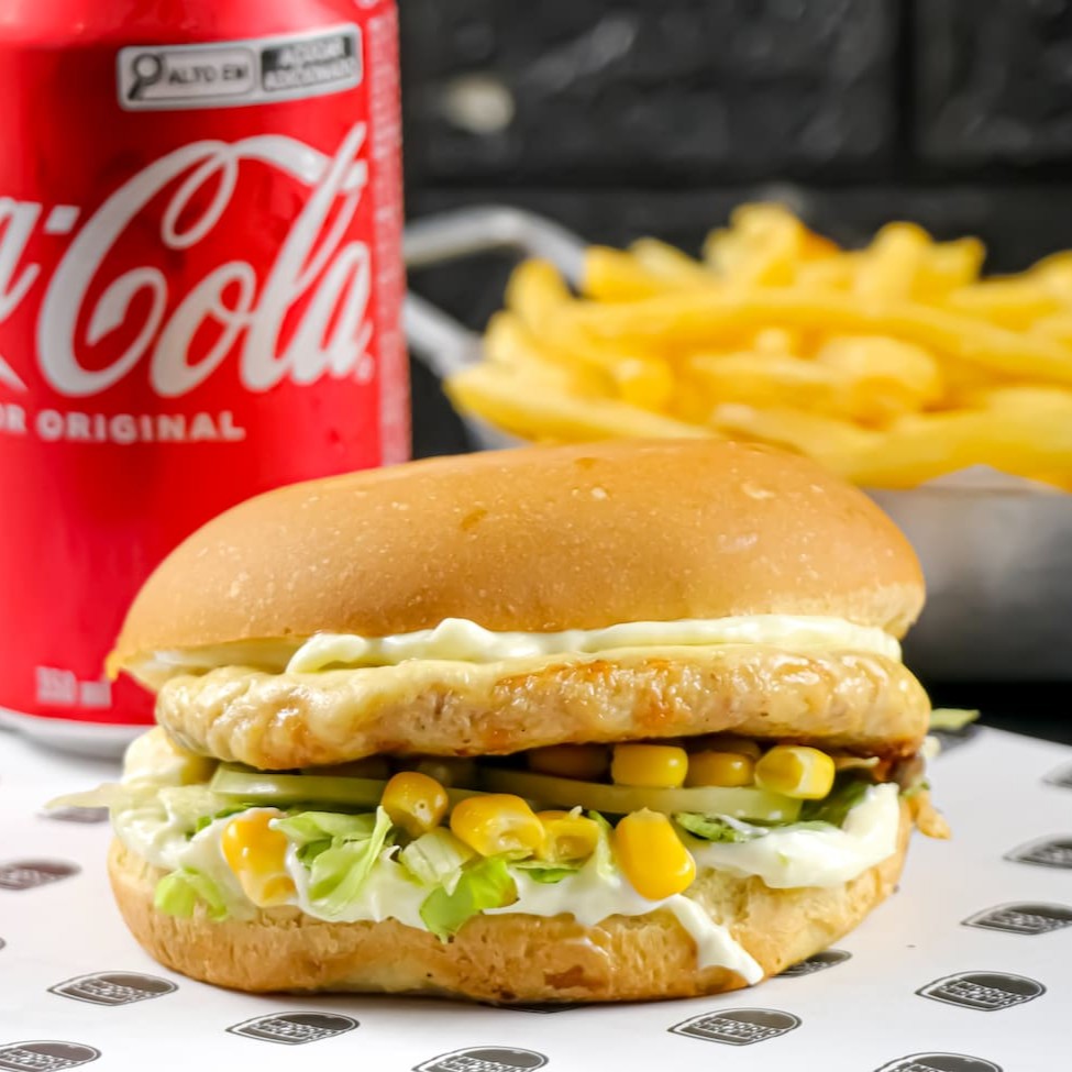 110g de burguer de frango bem temperado, alface americana, tomate fresco, milho, pão amanteigado fofinho e a maionese artesanal mais famosa do momento!