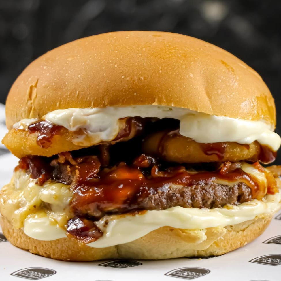 Nosso burger vem com 110g de carne bovina suculenta, cheddar artesanal, Muito bacon, cebola caramelizada, maionese do chef e pão amanteigado macio. Acompanha batata crocante (250g+) e uma bebida à sua escolha . Uma explosão de sabor do início ao fim!