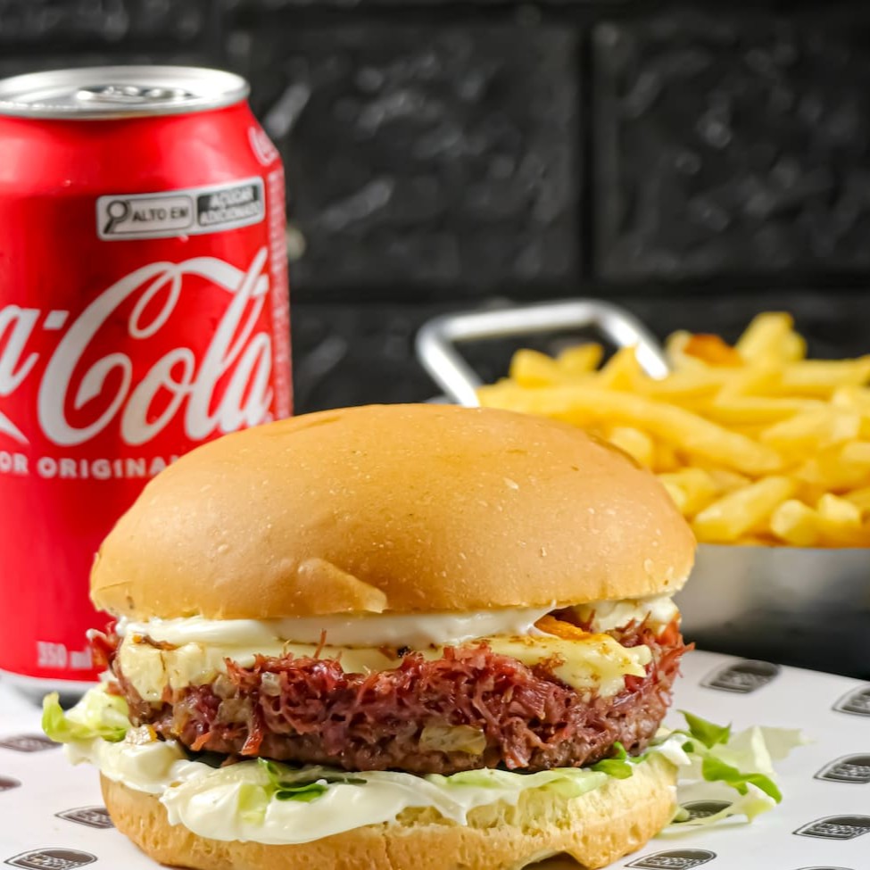 Charque refogada na manteiga de garrafa, queijo coalho tostado e crocante, hambúrguer de 110g de carne de primeira, alface fresquinho e a maionese exclusiva do chef, que dispensa comentários. Acompanha batata crocante (250g+) e bebida à sua escolha