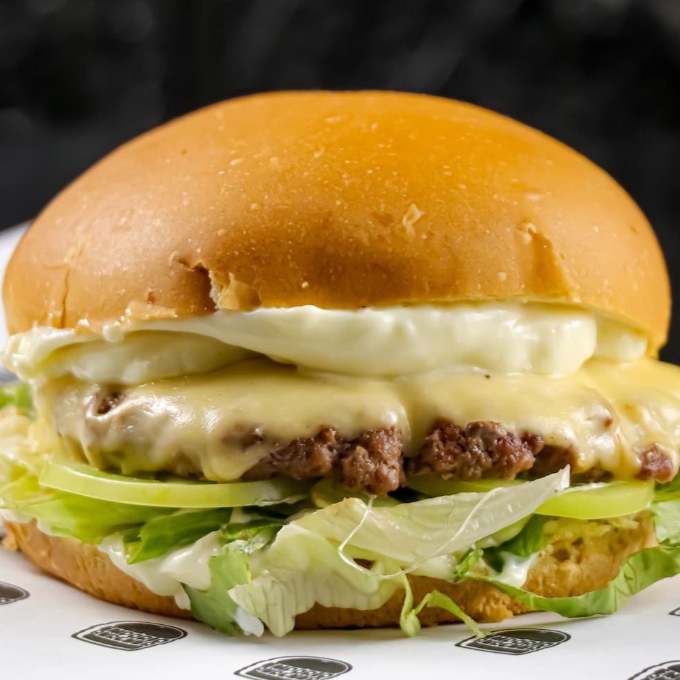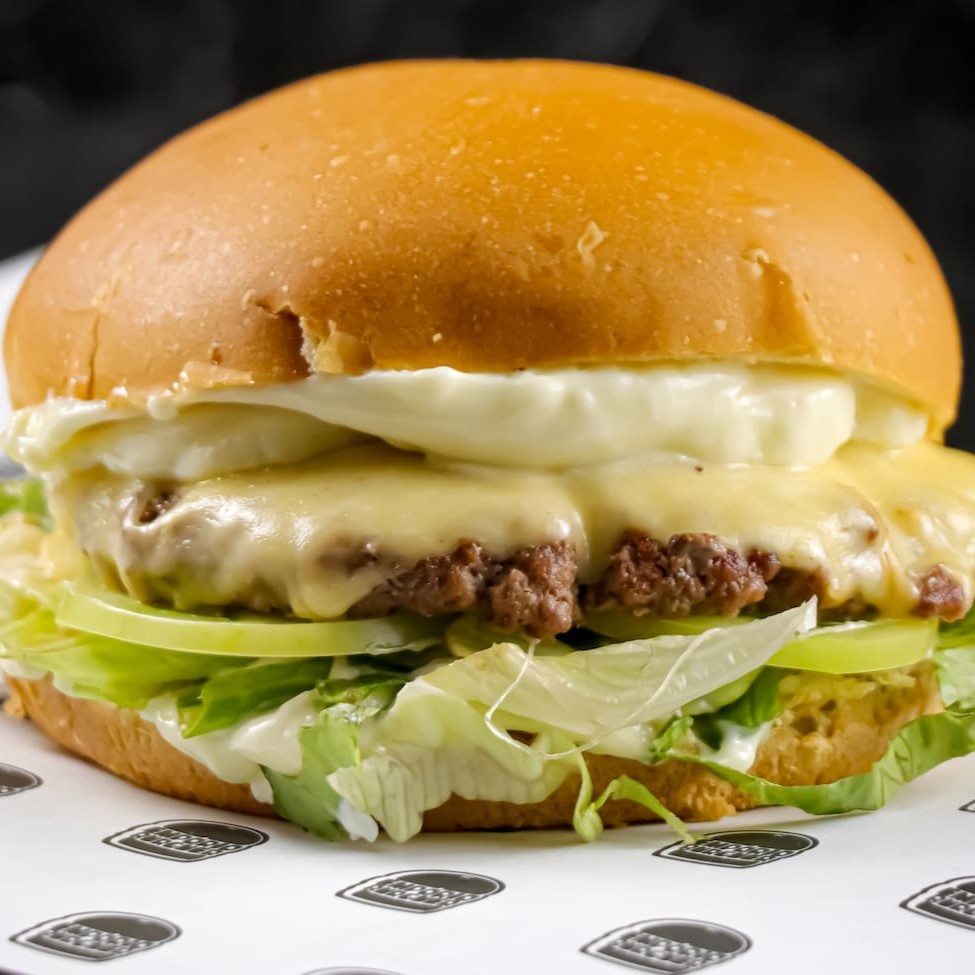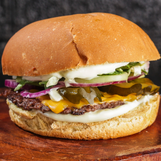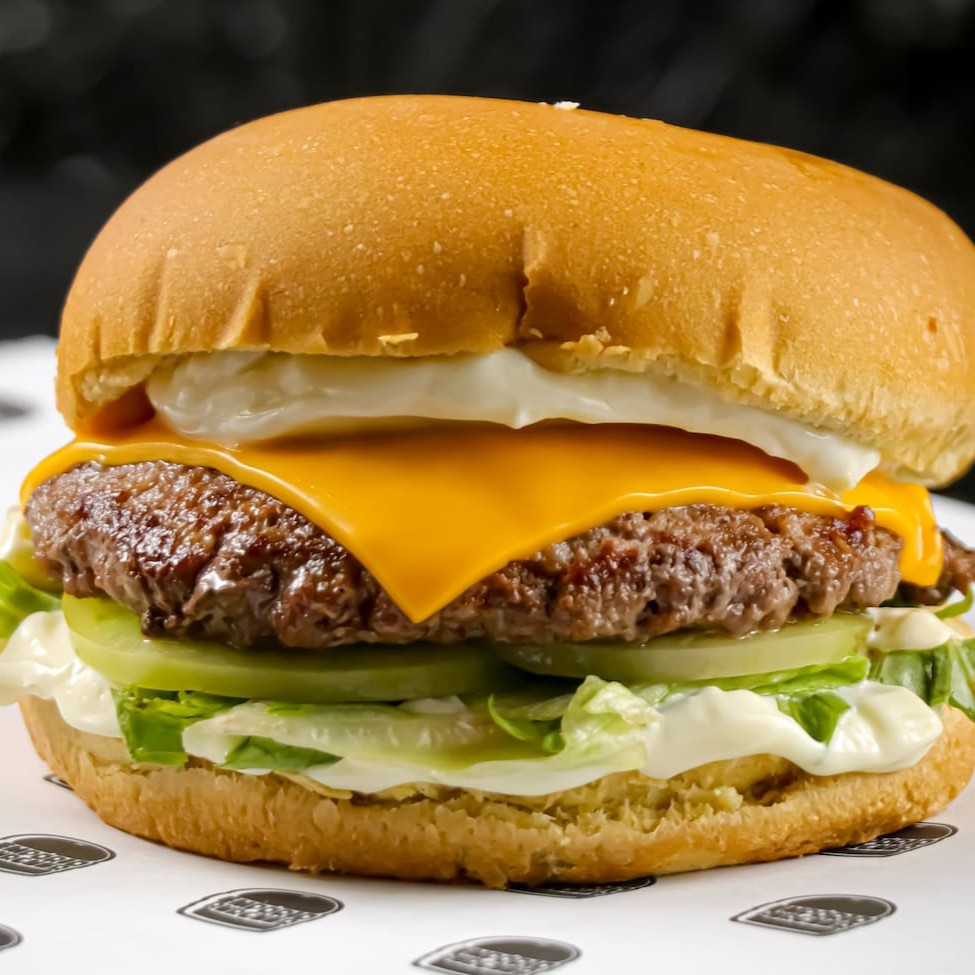 Nosso Pão Amanteigado, Carne de 50g de Smash com o Nosso Cheddar Derretido, Alface Fresquinho, Tomate cortado no Padrão, Cebola e Picles, e a Nossa Maionese do Chefe, que é Considerada a Melhor de Pernambuco