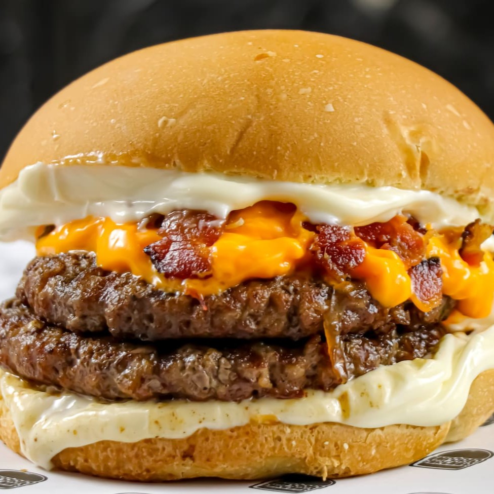 2 carnes bovinas de 110g, cheddar artesanal do chef, muito bacon, cebola caramelizada, pão amanteigado quentinho e nossa maionese de ervas finas — famosa por ser a melhor do momento!