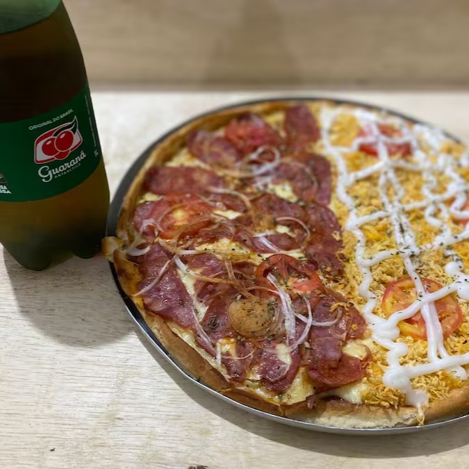 Separamos para você a melhor pizza Feita na Massa Artesanal Grande de 8 Fatias numa promoção com Guarana de 1 litro geladinho chegando em sua casa !!
