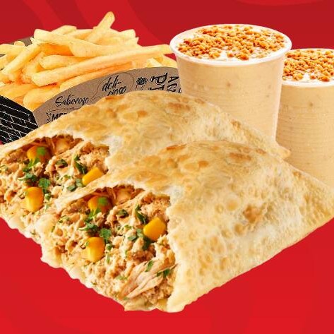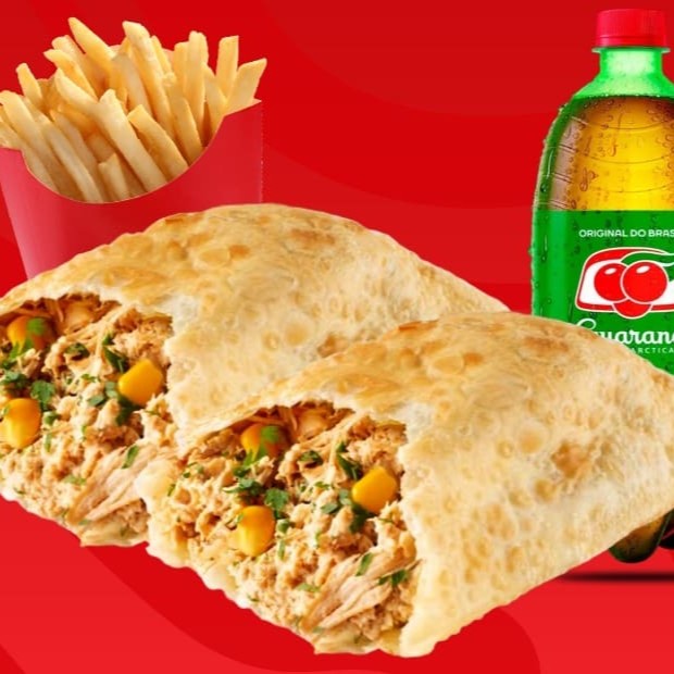 2 Pasteis de 4 Recheios Super Saboroso Com + 7 Acompanhamentos + 1 Batata Frita (M) + 2 Guaraná Tradicional.
