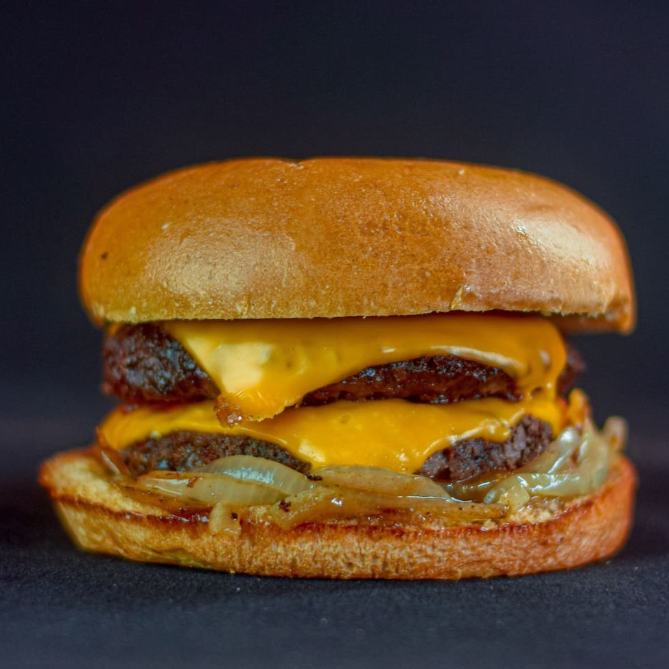 Pão brioche, 2 Blend bovino de 120g, fatias de queijo cheddar, fatias de queijo mussarela, cream cheese, maionese secreta.