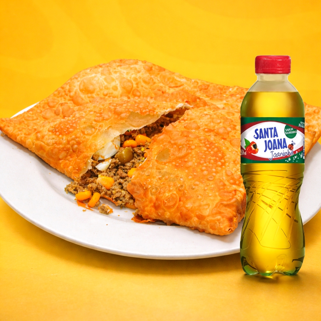 Um Pastel Super Saboroso Com Direito A 4 Recheios + 7 Acompanhamentos + Refri De 250ml.