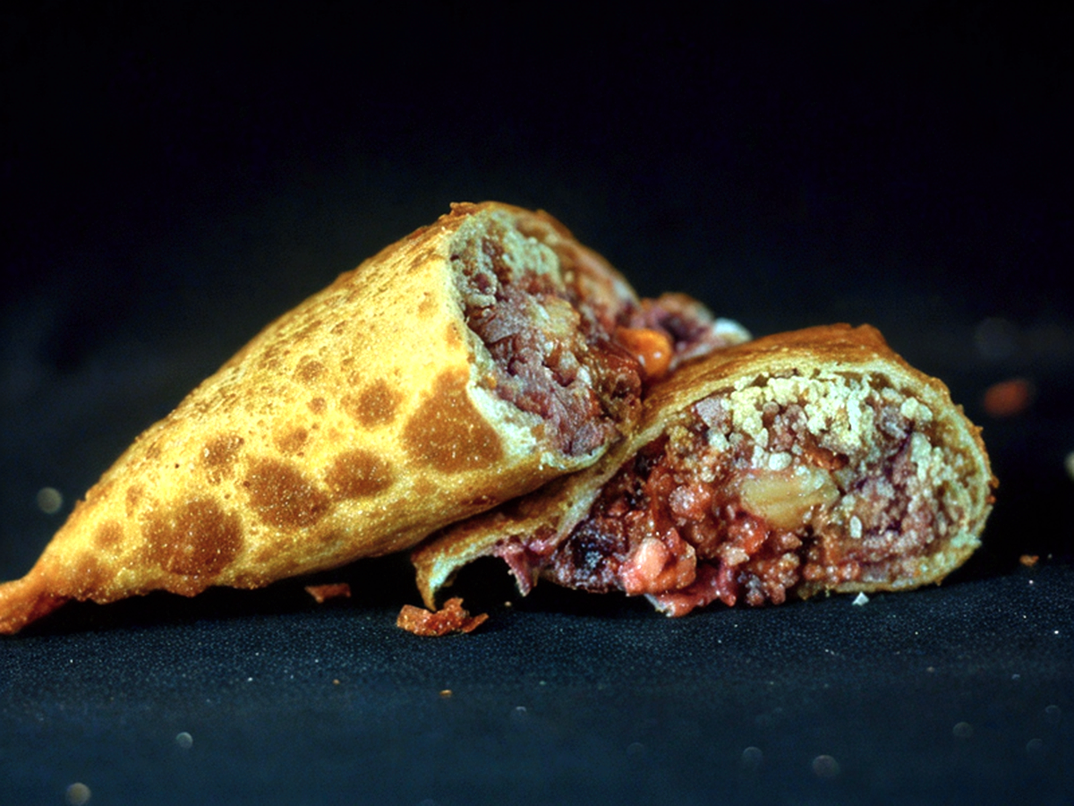 Um delicioso pastel super recheado com queijo coalho e doce de goiabada.