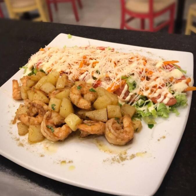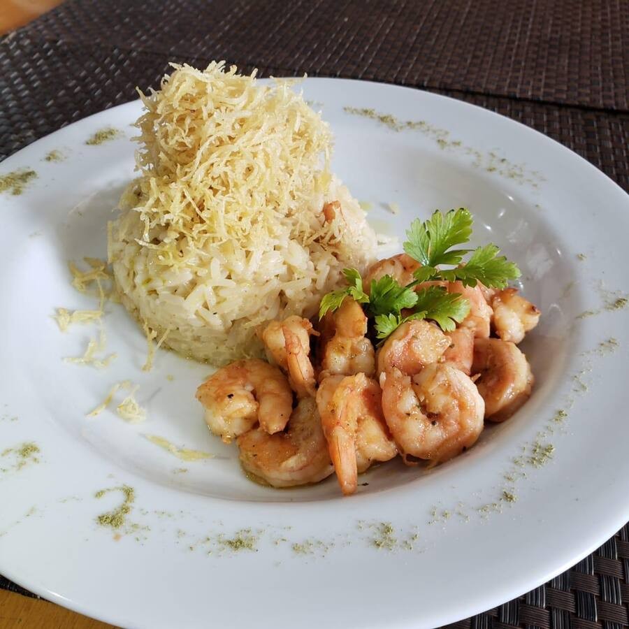 Delicie-se com nosso exuberante 'Camarão Gratinado', um destaque na categoria 'Peixe e Frutos do Mar'. Este prato apresenta camarões grelhados à perfeição e gratinados com um irresistível molho branco cremoso, enriquecido com um mix de queijos selecionados. Acompanha um sofisticado arroz de alho-poró, preparado com maestria, e uma crocante batata palha para adicionar uma textura inigualável. Uma combinação perfeita de sabores e texturas que promete uma experiência gastronômica memorável.