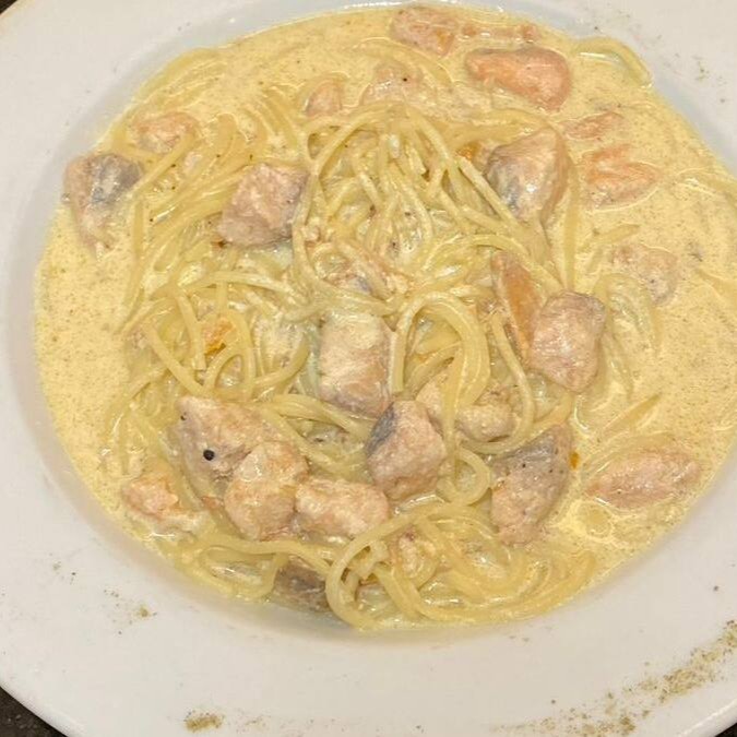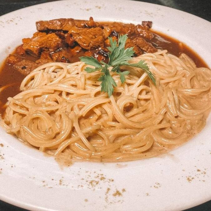 Delicie-se com a nossa especialidade na categoria de Massas: 'Filé com massa ao molho funghi'. Com uma combinação perfeita de sabor e textura, este prato traz suculentos cubos de filé, cuidadosamente grelhados, realçados por chips crocantes de bacon. Acompanha um divino espaguete banhado em nosso autêntico molho funghi, com um toque final de molho demi-glace. Uma verdadeira experiência gastronômica que irá despertar seus sentidos e deixar seu paladar pedindo por mais.