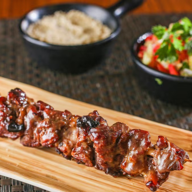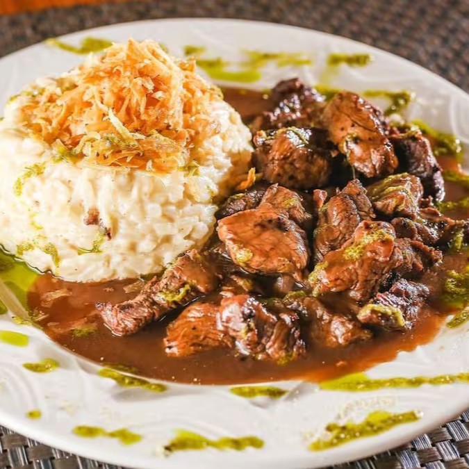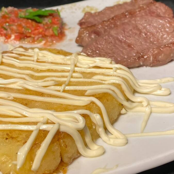 Deliciosamente preparada, a Macaxeira, é derretida na chapa até alcançar uma textura irresistível, realçada pelo sabor autêntico da manteiga de garrafa e do queijo, conferindo uma combinação perfeita. Acompanha ainda uma suculenta Picanha, assada no churrasco, garantindo um sabor inconfundível e acentuado. O prato é finalizado com um toque especial, um molho aioli fresco e saboroso. Uma experiência gastronômica única para quem aprecia a combinação de sabores da culinária regional com um toque de sofisticação.