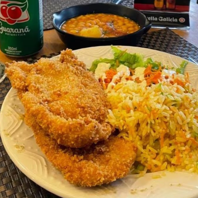 Acompanha arroz e vinagrete, farofa