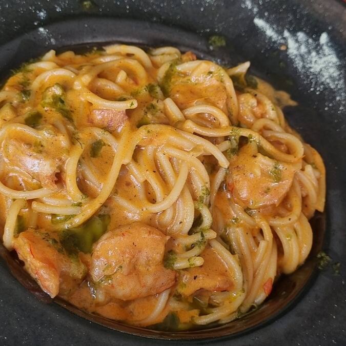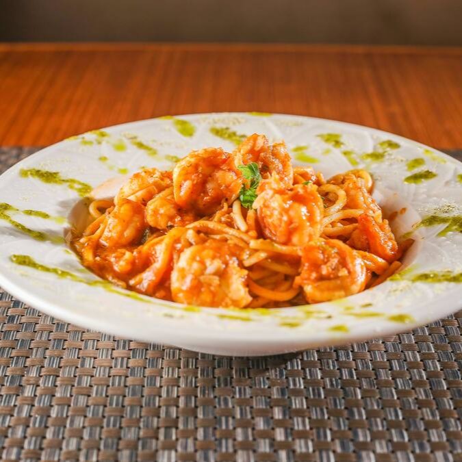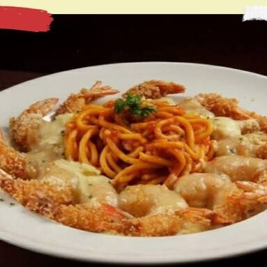 Saborosa Parmegiana de Camarão, preparada com suculentos filés de camarão, generosamente temperados com especiarias selecionadas pelo nosso chef. O toque cítrico confere um aroma irresistível e um sabor que aguça o paladar. Os camarões são habilmente empanados com a crocante farinha panko e cobertos por um delicioso queijo gratinado, que derrete e se entrelaça com o camarão, criando uma combinação de sabores inesquecível. O prato é finalizado com um autêntico espaguete ao sugo, preparado com tomates frescos e selecionados. Uma verdadeira celebração para os amantes de massas e frutos do mar.