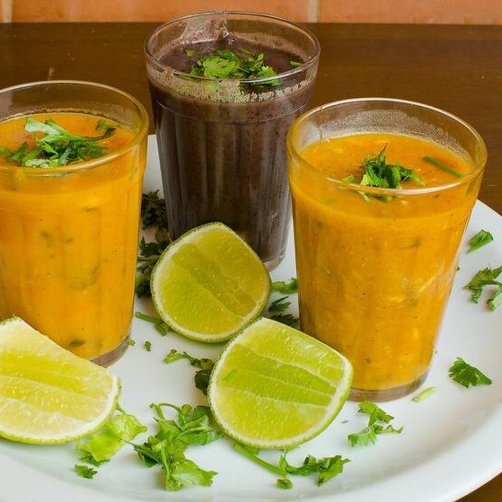 Laranja, limão, uva,abacaxi com hortela, abacaxi,morango ou morango com uva e Laranja com franboesa.