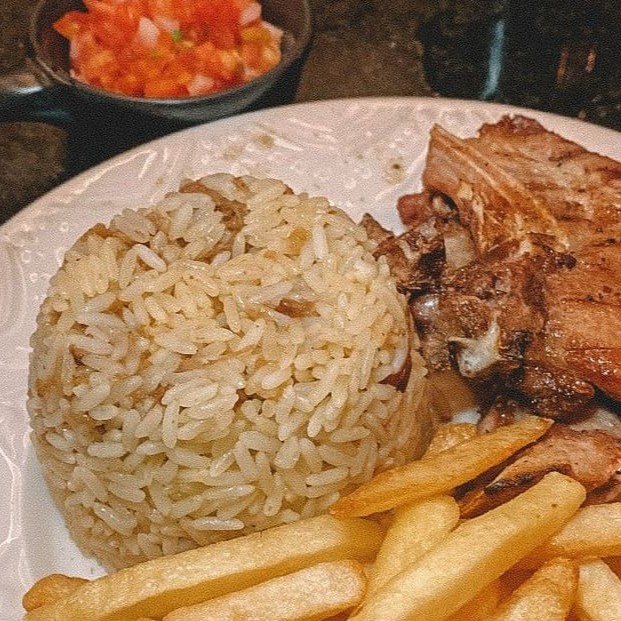 Apresentamos nossa deliciosa e suculenta 'Bisteca Suína', um destaque especial no nosso cardápio de 'Pratos da Casa'. Este prato é preparado com uma bisteca suína meticulosamente grelhada na churrasqueira, garantindo uma crosta externa perfeitamente caramelizada e um interior tenro e suculento. Acompanha um arroz generosamente temperado com pedaços de carne de panela ao molho, que agrega um sabor único e caseiro. Para completar, servimos um vinagrete fresco e vibrante, além de batatas fritas crocantes e douradas. Uma verdadeira explosão de sabores!