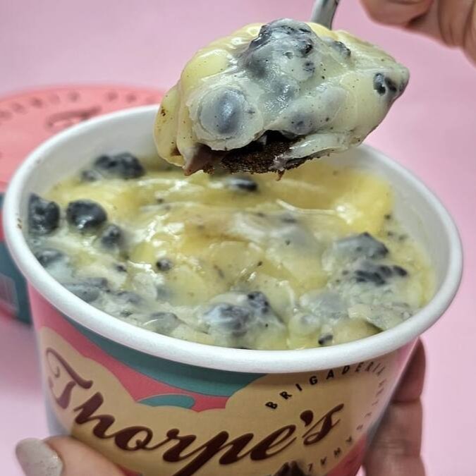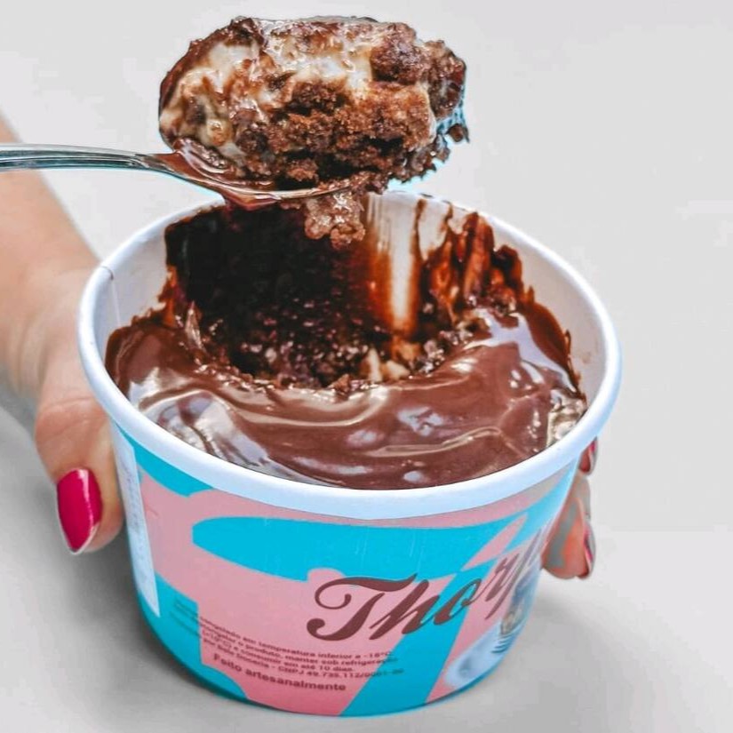 Brigadeiro cremoso a base de cacau, leite em pó, creme de leite e biscoito