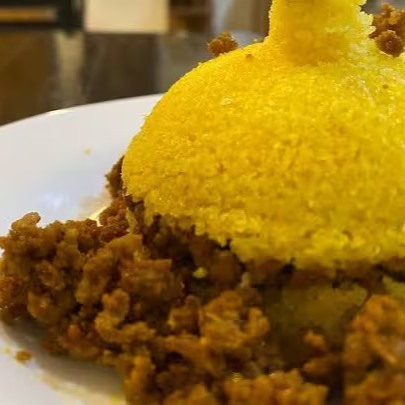 "Nosso Mistão é uma explosão de sabores! Vai cuscuz, calabresa, frango, ovos, tomate, cebola e, por cima, uma generosa camada de queijo cremoso derretido. Uma refeição completa e irresistível!"