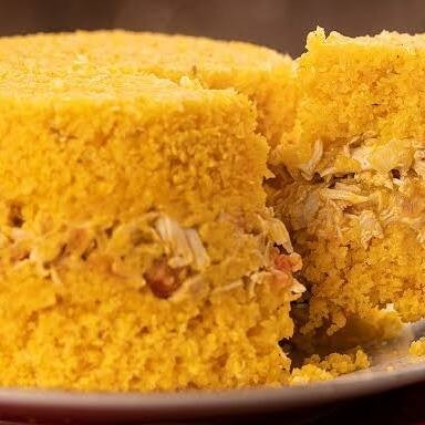 um prato com sabor nordestino e muito carinho! Feito com purê cremoso de macaxeira (aipim/mandioca), levimente amanteigado, recheado com frengo desfiado e bem temperado , Finalizando com uma generosa camada de queijo gratinado, douradinho e inrresistivel. Uma refeição completa, quentinha e cheia de sabor caseiro - ideal para matar a fome com gosto de tradição.
