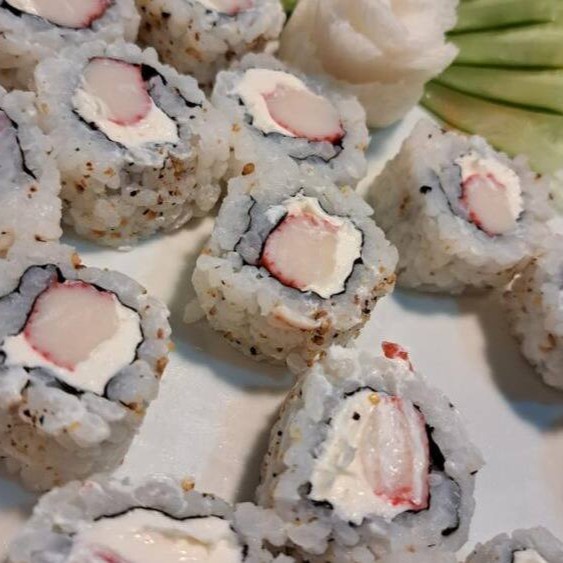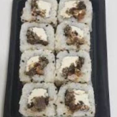 10 unid de arroz por fora envolvido na alga com kani-kama e cream cheese.