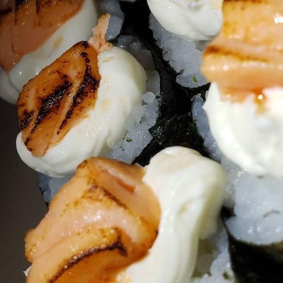 Recheio de salmão, cream cheese, cebolinho e gergelim.