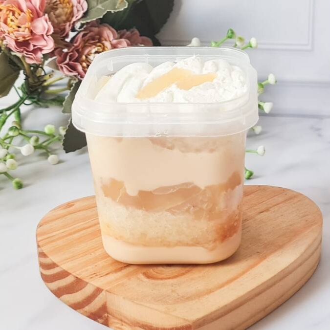 Bolo de Pote Abacaxi com Ninho camadas de bolo fofinho, recheio de Ninho cremoso e pedacinhos de abacaxi em calda artesanal, finalizado com mousse de Ninho. Um equilíbrio perfeito entre doçura e leveza.