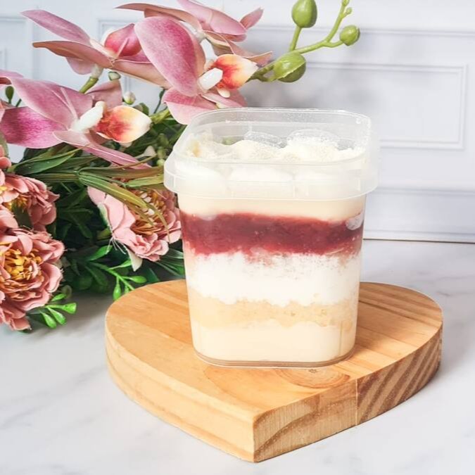 Um sabor que conquista na primeira colherada! Bolo de pote Ninho com geleia de morango,com camadas de bolo fofinhos e um recheio cremoso de leite Ninho com geleia artesanal de morango caseira.