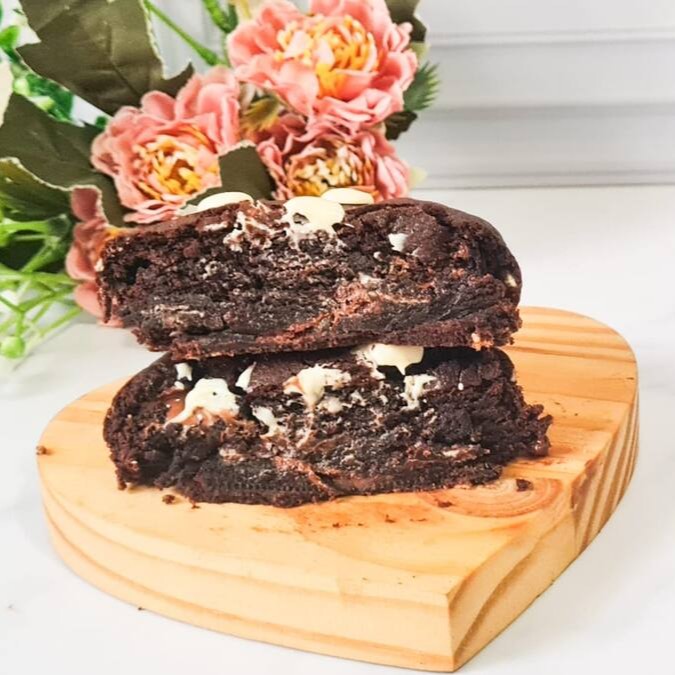 Cookie Oreo simplesmente irresistível massa crocante por fora e úmido por dentro com duas combinações de chocolates nobres branco e meio amargo e também conta com biscoito Oreo. _tags_