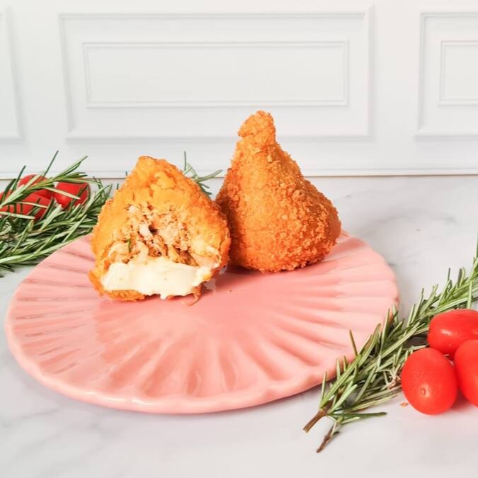 Uma explosão de sabor! Massa leve e amanteigada que derrete na boca, recheada com frango desfiado cremoso temperado no ponto certo com catupiry original.