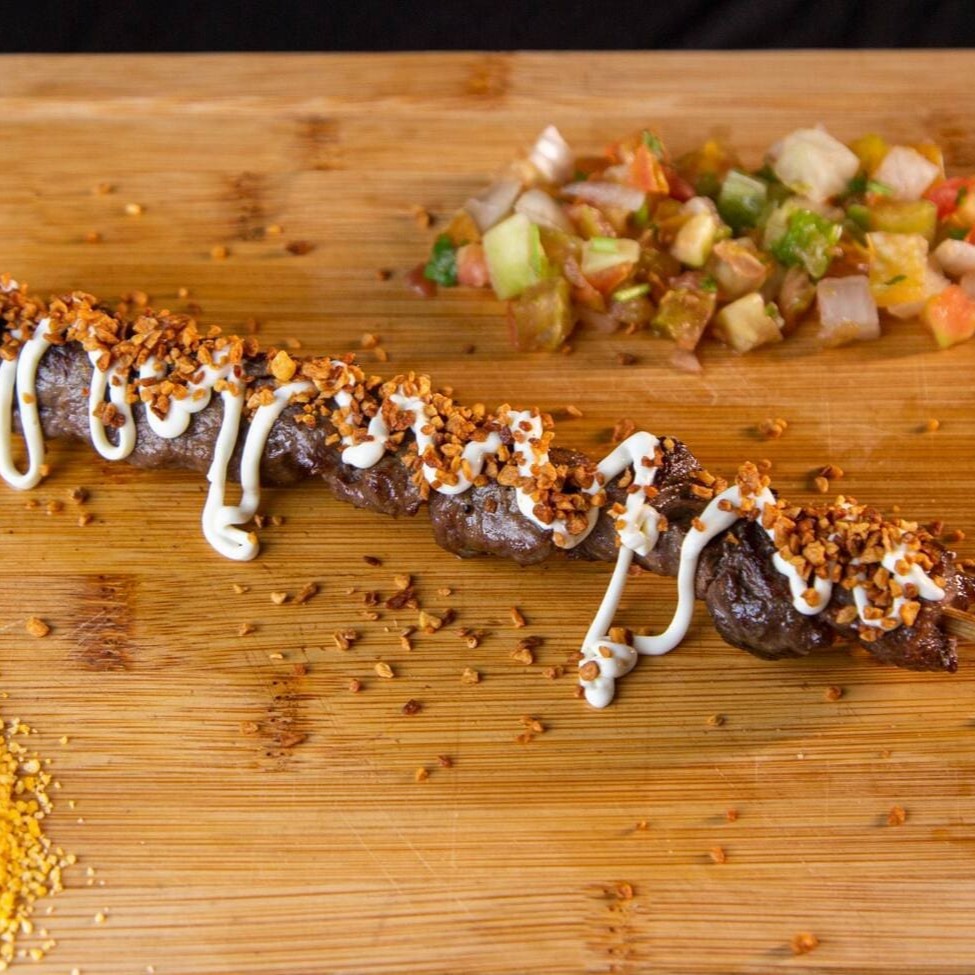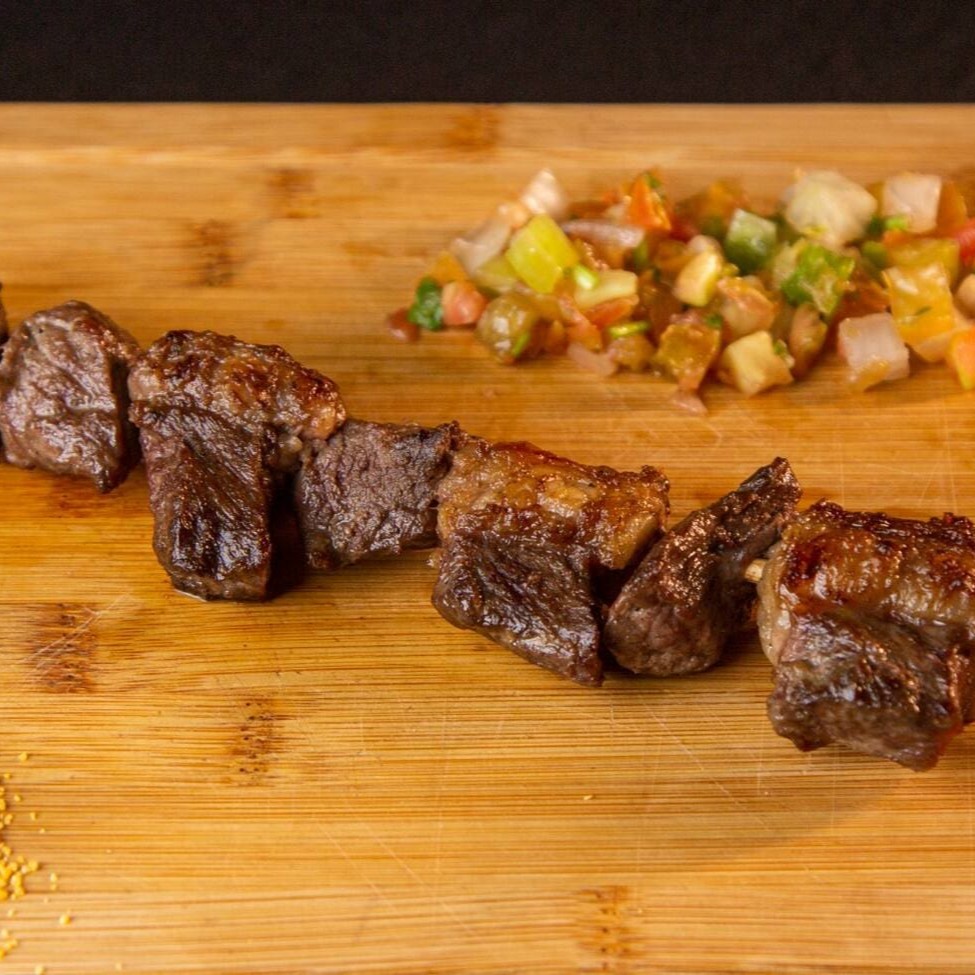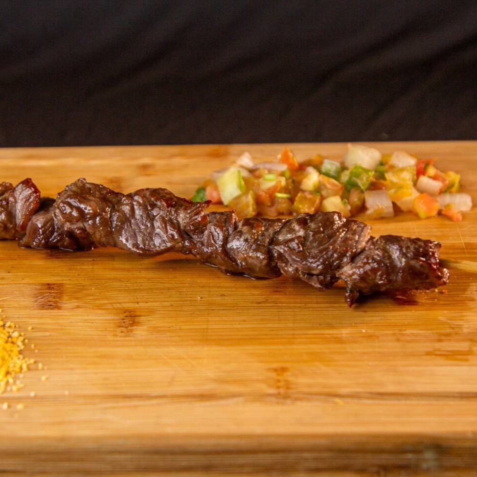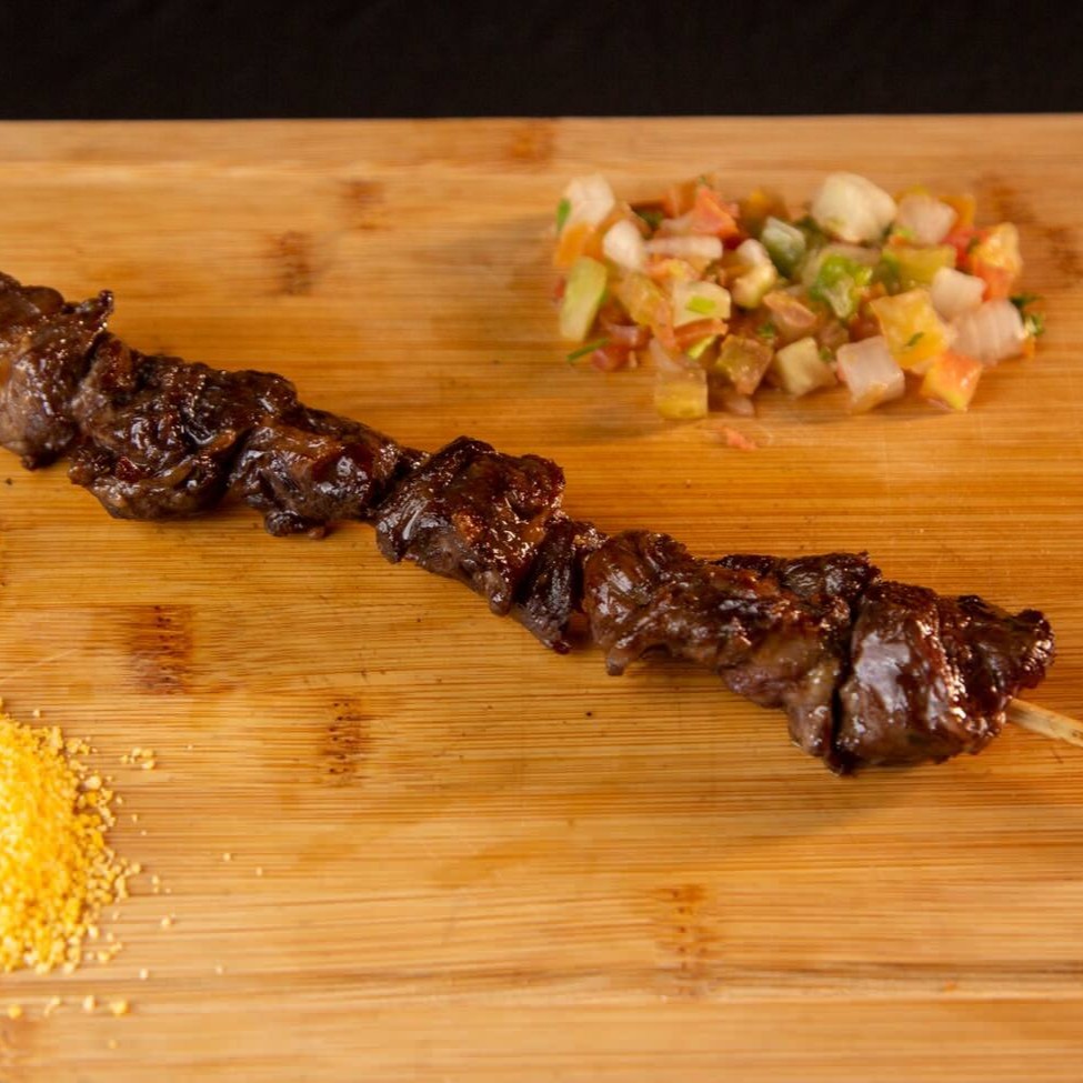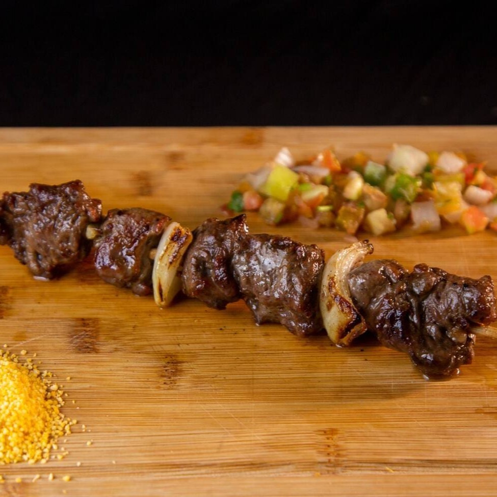 Espetinho com suculentos pedaços de alcatra de primeira.