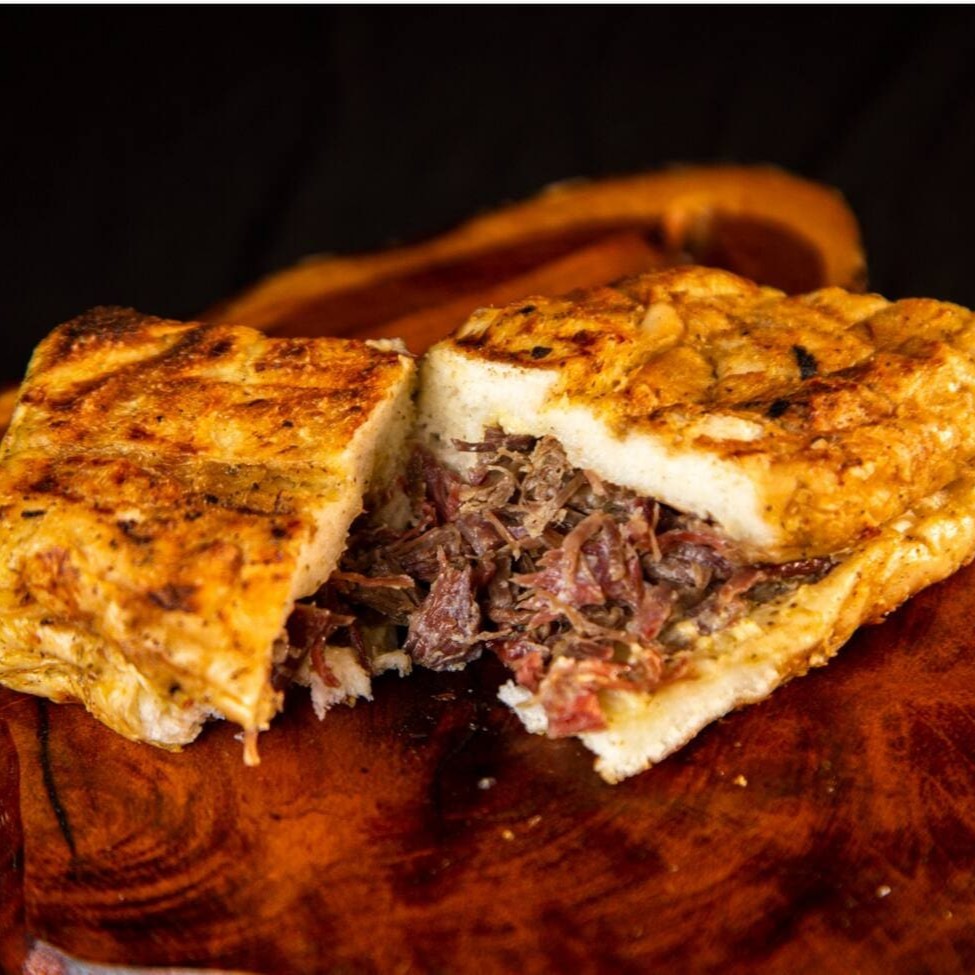 Pão de alho com recheio de charque desfiadinha, esse é um dos nossos queridinhos
