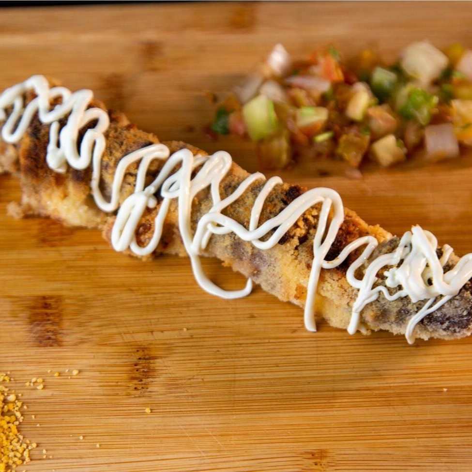 Cubos macios de filé mingnon, intercalados com queijo coalho, empanado no queijo parmesão e finalizado com cream cheese.