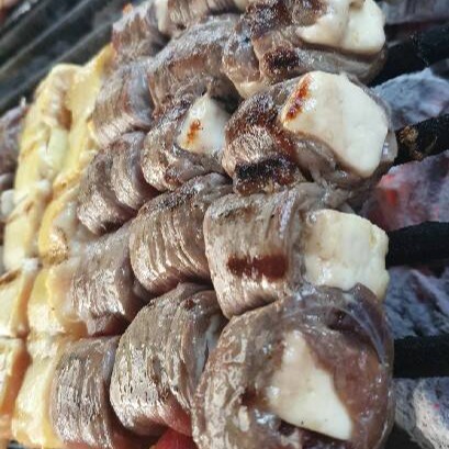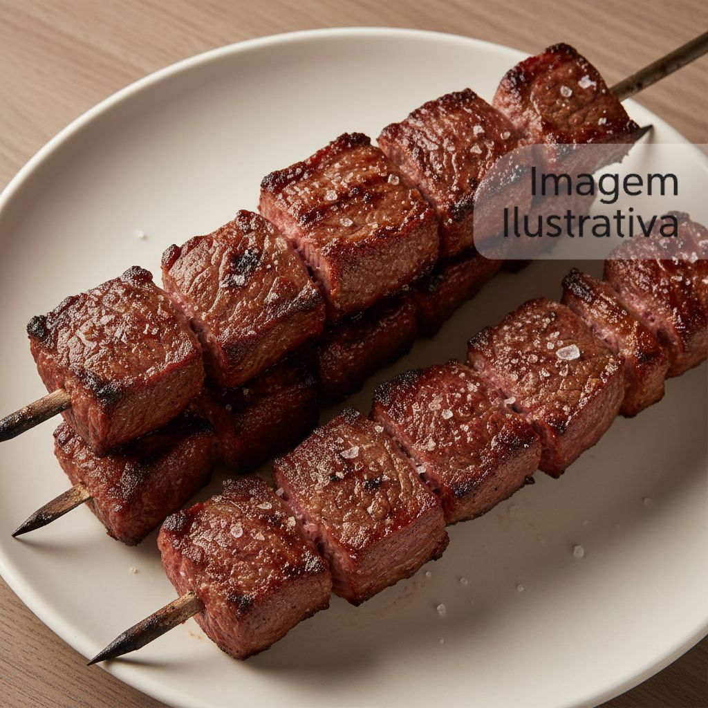 Cortes suculentos de carne bovina, grelhados no espeto e servidos com um toque de sal grosso.