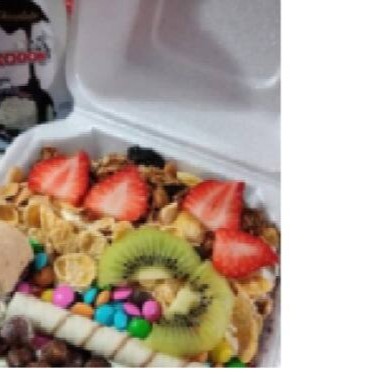 Ate 5 opções leite em pó granola chocobol sucrilho paçoca jujuba tubi m&m machimelo 2 de calda 2 de frutas