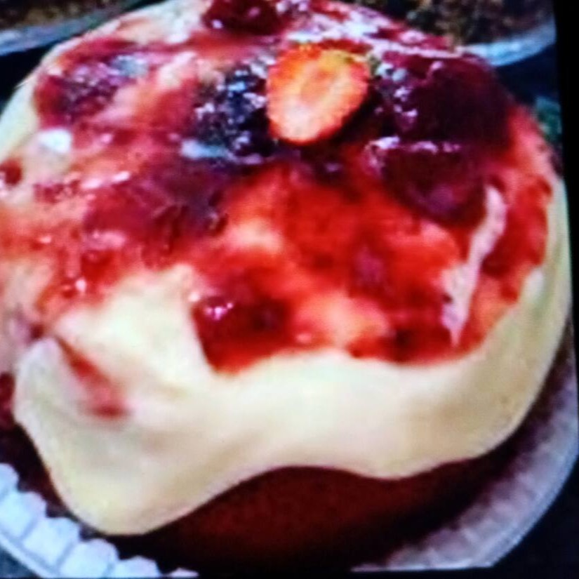 Massa branca com recheio de geleia de frutas vermelhas.