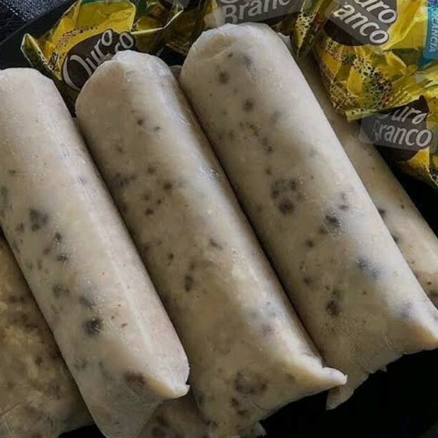Base de sacolé cremoso com polpa de milho verde.