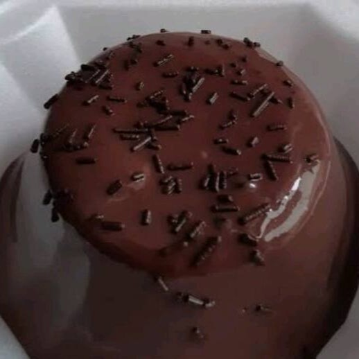 Massa chocolate, recheio e granulado de chocolate,