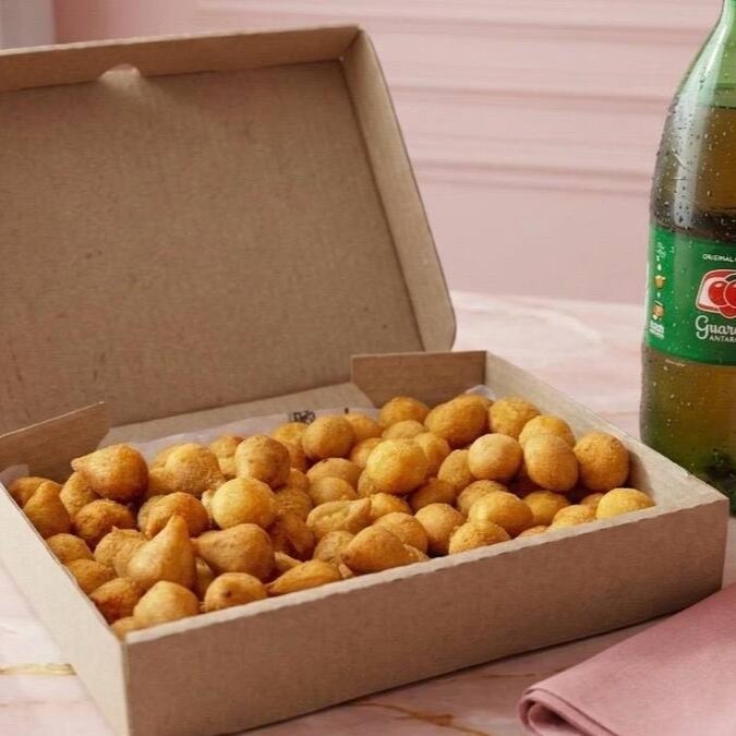 50 salgados quentinhos acompanhados de 1 Guaraná Antarctica 1l. Prático, gostoso e completo.