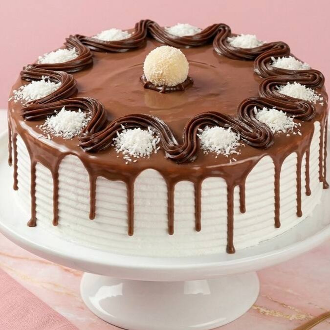 Torta Prestígio com massa de chocolate, recheio cremoso de coco e cobertura de chocolate. Combinação perfeita de sabores. Aprox 1.150kgobs. Quer escrever “Parabéns”, o nome da pessoa ou “Feliz Aniversário” na torta? É só informar na observação do pedido.