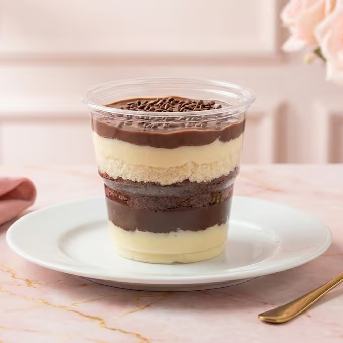 Bolo no pote de chocolate com camadas macias e recheio cremoso. Ideal para matar a vontade de chocolate