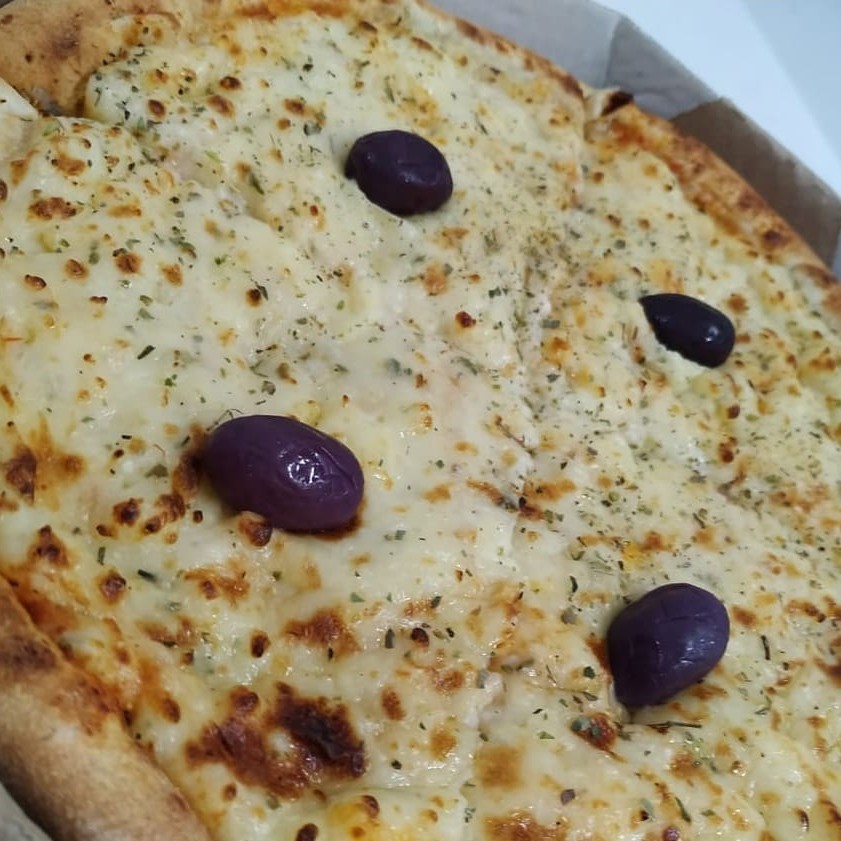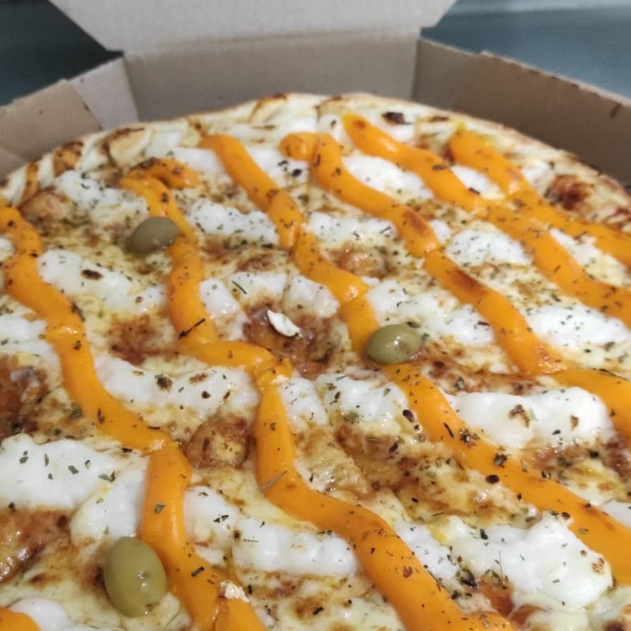 Molho, mussarela, Catupiry, provolone, cheddar, orégano e azeitonas