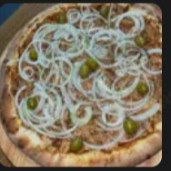 Molho, mussarela, atum, cebola, azeite e orégano.