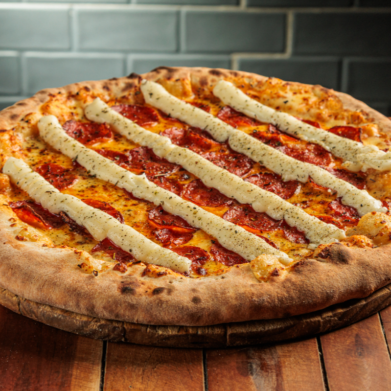 Massa tradicional, delicioso molho italiano, caprichada porção de queijo mussarela, saborosa calabresa, cebola e orégano.