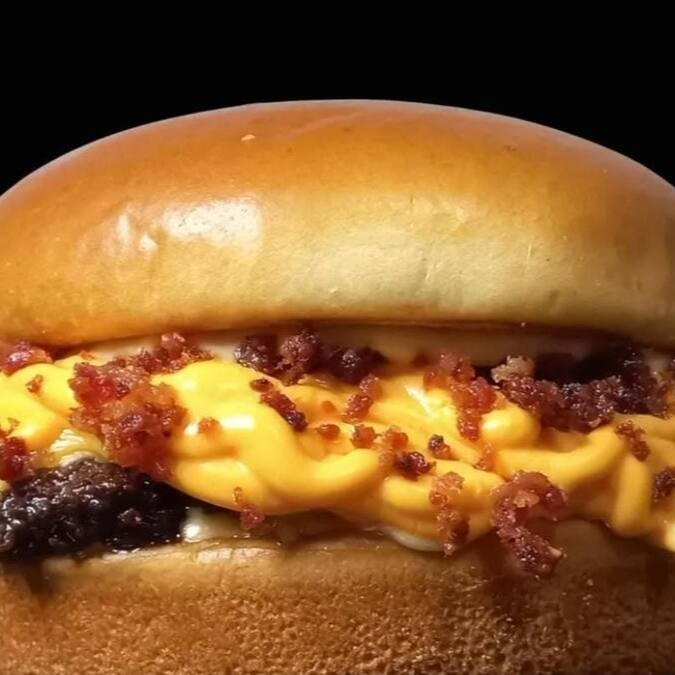 2blends bovinos 130g cada, delicioso pão brioche, saboroso queijo cheddar duplo, bacon fatiado e maionese farini.