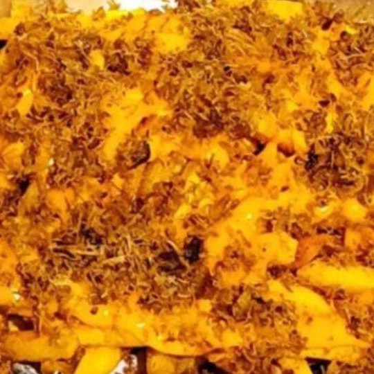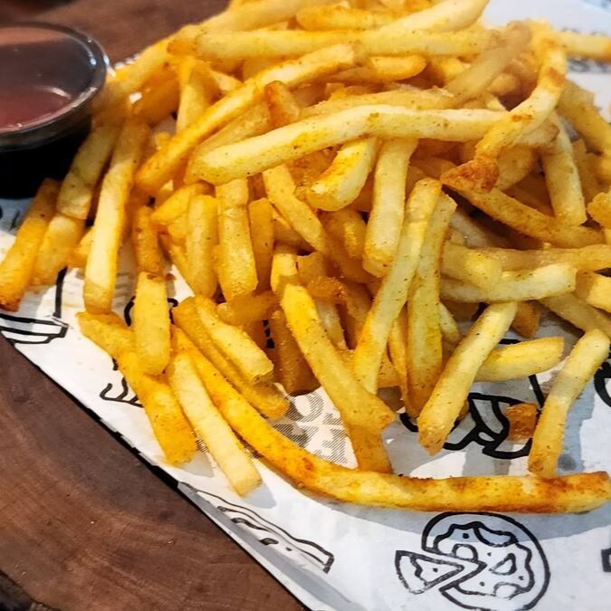 Batatas Fininhas e Crocantes, Com Tempero Especial da Casa, Acompanha Cheddar e Uma Farofinha Crocante de Bacon.