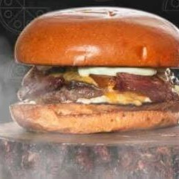 Blend bovino130g, delicioso pão brioche, 120g de charque, saboroso queijo prato, creme cheese e maionese farini.