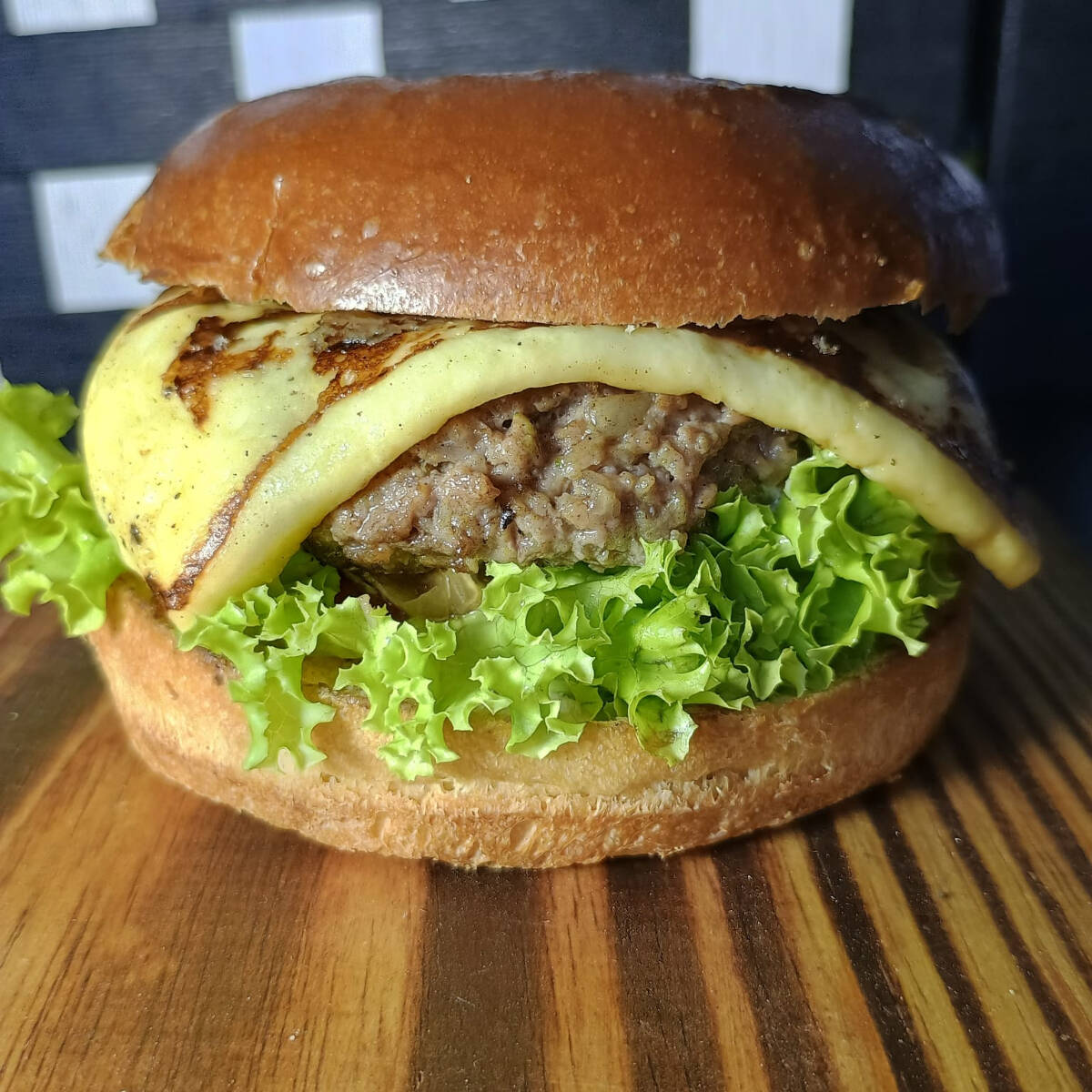 Pão gourmet macio, 2 carnes artesanais de 90g, queijo coalho grelhado na chapa, creme cheese, charque desfiada, salada kfc
