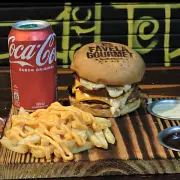 2 suculentos Favela e 1 refrigerante de 1 litro para completar sua refeição. Perfeito para quem quer saborear um hambúrguer delicioso e se refrescar com um refrigerante geladinho!