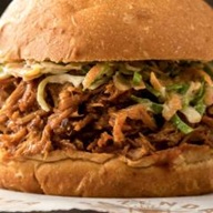 Pão de brioche, nosso smoked Brisket desfiado, molho BBQ e picles de pepino. Levemente apimentado.