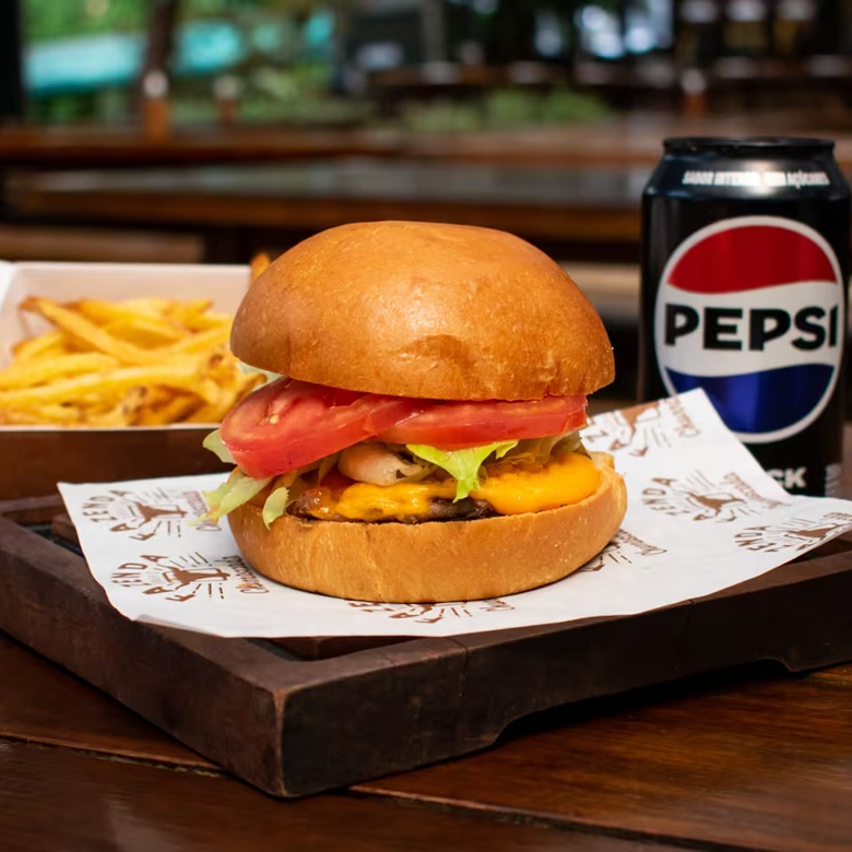 Pão brioche, nosso blend de burger 180g e queijo, tomate e alface. Acompanha 1 Batata Frita e uma Bebida à sua escolha!