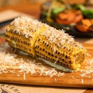 Uma espiga de sweet corn passada no aioli. Acompanha uma nuvem de parmesão ralado e Rub da casa.