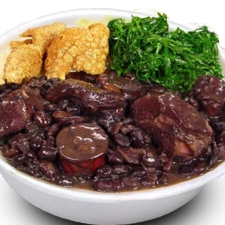 Deliciosa Feijoada magra com carne seca, calabresa defumada, bacon, costelinha, Pernil suíno. Acompanha: Arroz soltinho, Couve refogada com alho frito, e farofa temperada. Tudo em potinhos separados!!
