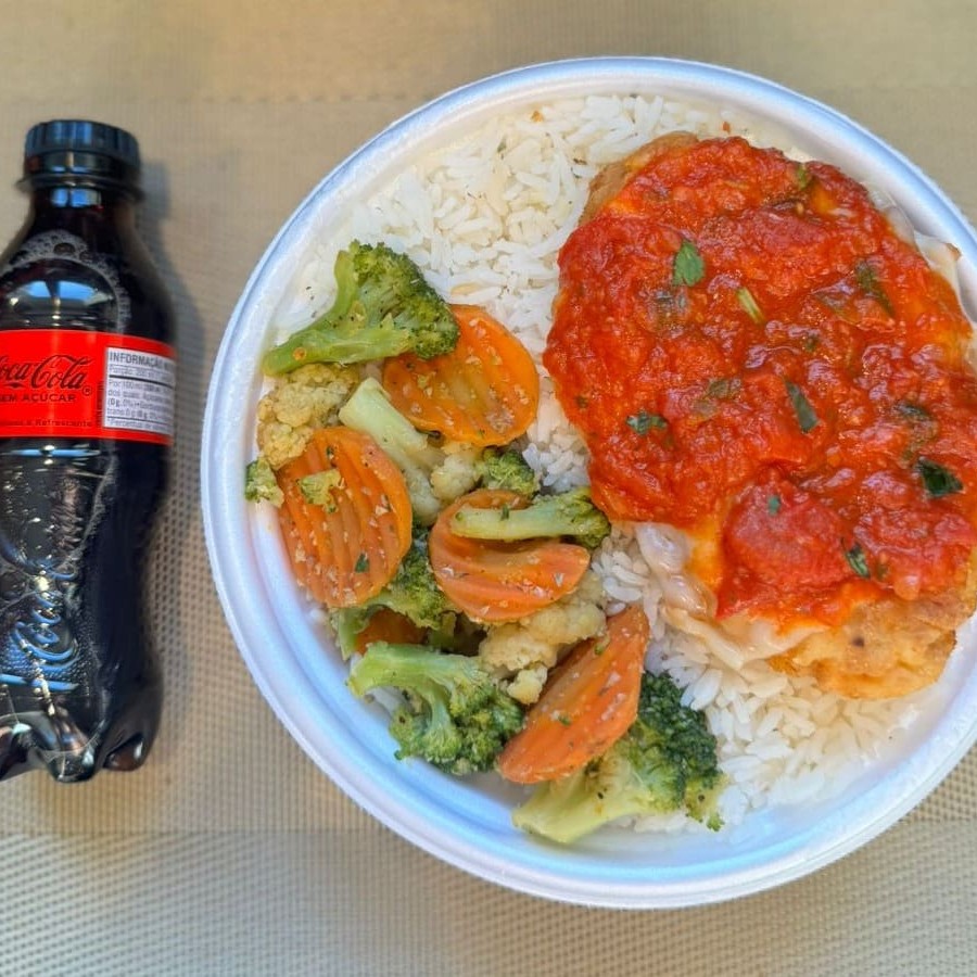 Frango Parmegiana & Legumes + Coca Zero Pet + R$ 18,99 Leve Outra Marmitex
